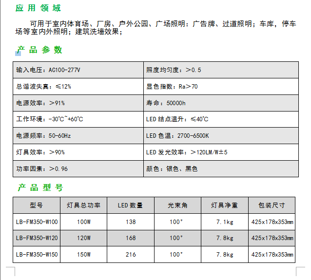 LED泛光燈 > LB-FM350系列80-150W > 350系列泛光燈80-150W采用高亮3030燈珠