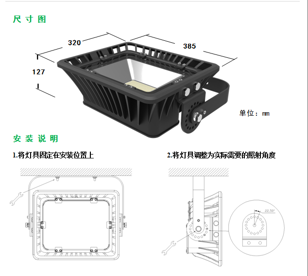 350系列泛光燈80-150W采用高亮3030燈珠 詳細介紹