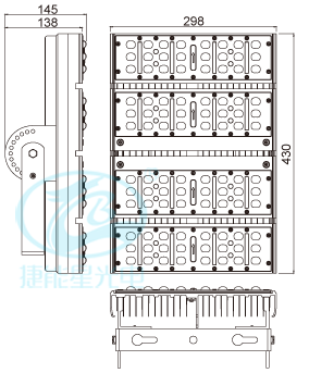 2、獨特的散熱體設(shè)計,以高導(dǎo)熱系數(shù)的鋁材作為散熱主體,有效將熱量傳導(dǎo)擴散,從而降低燈體內(nèi)的溫度,有效保證了光源和電源的壽命;