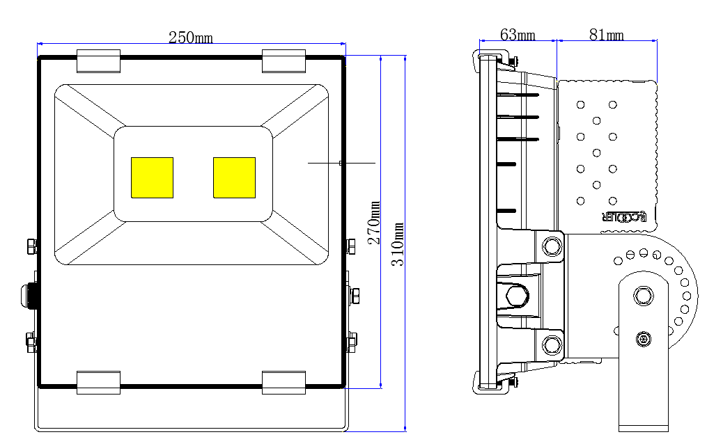 3、散熱體表面進(jìn)行陽極氧化防腐處理,結(jié)構(gòu)緊湊美觀、防腐;反光罩加玻璃防塵罩,防水、防塵性能好;