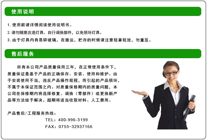 1、光線柔和:使用5mm鋼化玻璃燈罩防止老化變色問題,出光面磨砂處理,使光線柔和,不刺眼。