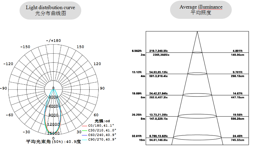 二次配光,光束角可選;